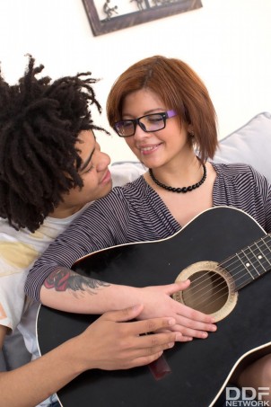Dude teaches his girlfriend to play the guitar but that turns on them both to such a limit that they hurry to put away the instrument and focus on pleasing each other