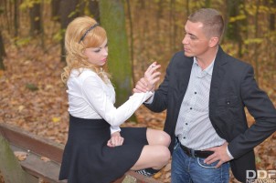 Redhead barely legal teen in a miniskirt goes out back to have a smoke and gets caught so she offers anal satisfaction in exchange for the guys silence which he gladly accepts and pulls out his dick ordering her to spit on it to get it wet and sloppy for her tight tiny asshole
