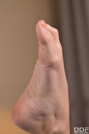 Skinny brunette babe Clea Gaultier shows off her feet and pussy