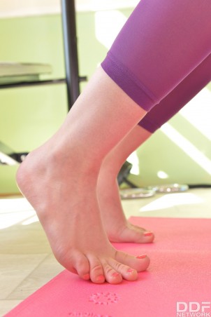 Chelsy Sun and Monique Woods visit the same yoga studio where they work out to get in shape but they also seduce one trainer into fucking them in a threesome style