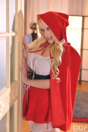 Kinky blonde Angel Wicky takes off her Red Ridding Hood costume