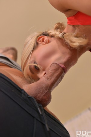 Sporty blonde Victoria Pure gets a double pussy cream pie