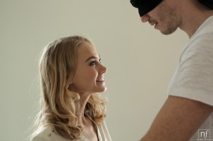 Nancy A tells Martin to close his eyes so that she could give him a surprise and when he obeys stunning blonde gives him a blowjob which ends with a doggy fuck
