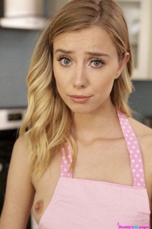 Half-naked blonde in a pink apron washes the dishes when the dude comes to distract her and to seduce her into making sex on the kitchen floor right away